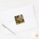 Pegatina Cuadrada Pollo blanco y negro en el corral
