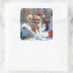 Pegatina Cuadrada Pomerania corre en Nieve con Gorra de Navidades