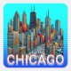 Arte pop de tipo cómic en Chicago, horizonte de Illinois. Los edificios de las tiendas son arte. El recuerdo de Chicago.