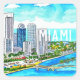 Pegatina Cuadrada Postal tropical de Miami Skyline