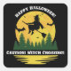 Pegatina Cuadrada Precaución en Halloween Bruja Cruzando Escoba Vola