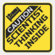 PEGATINA CUADRADA PRECAUCIÓN UN CIENTÍFICO ESTÁ PENSANDO DENTRO