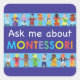 Pegatina Cuadrada Pregúntame sobre MONTESSORI
