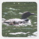 Dos lomos de bebé con un globo adulto en el lago Arcoiris en el centro norte de Maine.