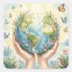 Pegatina Cuadrada Pretty Watercolor Earth, Butterflies and Birds