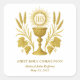 Celebrar un hito sagrado con este elegante diseño de la Primera Comunión. Con un cáliz dorado tradicional y diseño anfitrión con "IHS" y rodeado de trigo y viñas, este pegatina o sello para sobres personalizado honra la Real Presencia de Cristo en la Eucaristía Santa. Perfecto para celebraciones católicas sacramentales.