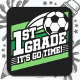 Este diseño temático de 1º grado de vuelta a la escuela de fútbol es perfecto para un profesor de primer grado al que le encanta el fútbol o un estudiante de 1º grado que juega fútbol listo para empezar 1º grado el primer día de vuelta a la escuela y todo el año! Cuenta con ‘1er grado - ¡Es el momento de irse!' de vuelta a la escuela cita de primer grado con fútbol en la gráfica del campo de fútbol. ¡Ideal para un profesor de primer grado o de primer grado al que le encanta ver o jugar al fútbol!