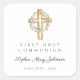 Pegatina Cuadrada Primera Comunión Niña Corona Floral Cruz Elegante