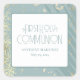 Haz que la planificación de la celebración de tu Primera Comunión sea fácil con esta colección de Plantillas DIY. Contiene una invitación, sobre coordinado y etiqueta de dirección de devolución. También encontrarás letreros de bienvenida, suministros para la fiesta y una tarjeta de agradecimiento. Todo el texto se puede editar. Busca artículos en la colección Dusty Blue Gold Arch. Este diseño botánico abstracto azul y dorado es moderno, simple y sofisticado. El texto vintage retro es clásico y sin embargo muy actual. Esta etiqueta cuadrada contiene Primera Comunión en letras grandes con el nombre del niño y la fecha debajo.