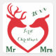 Pegatina Cuadrada Primera Navidad casado Sr. y Sra. Heart Deer