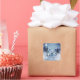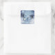 Pegatina Cuadrada Primera Navidad, paisaje invernal, gnomos azules