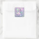 Pegatina Cuadrada Princesa de hadas arcoiris con Chica floral Peony
