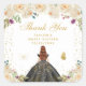 Pegatina Cuadrada Princesa de pelo marrón floral crema dulce diecisé