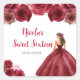 Pegatina Cuadrada Princesa floral con vestido rojo dulce dieciséis