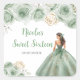 Este dulce pegatina de dieciséis años cuenta con una hermosa princesa en un vestido de bolas verde salado con arreglos florales. Es perfecto para una dulce fiesta de 16 años.