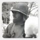 Fotografía de la Segunda Guerra Mundial que muestra a un soldado estadounidense durante una pausa en la lucha cerca de Bastogne durante la Batalla del Bulge.