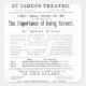 Imagen:135742 Programa para una representación de La importancia de ser serio, de Oscar Wilde (1854-1900) en el Teatro St. James, 14 de febrero de 1895 (foto de b/w) (litho). Escuela de Inglés, (siglo XIX). Colección Privada, La Colección Stapleton. Arte, Bella Artes.