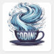 Este diseño gráfico audaz capta la esencia de la codificación con sus tonos azules y la inteligente combinación de elementos. Una taza de café con la palabra "codificación" es la pieza central, mientras que el vapor en aumento está ingeniosamente compuesto de números binarios. Perfecto para programadores, desarrolladores o cualquier persona en el mundo de la tecnología que ame una buena taza de café para potenciar sus sesiones de codificación. Los colores azules le confieren una atmósfera fresca y moderna que los amantes de la tecnología apreciarán. Diseño de café con codificación azul, arte programador de código binario, gráfico de drinkware de amante de la tecnología, ilustracion de taza de café inteligente, arte de vapor binario de codificación, merco de codificador de tono azul moderno, motivación de cafeína desarrolladora, humor de café de la informática, entusiasmo de codificación digital, tee programador de gradiente azul