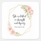 Pegatina Cuadrada Proverbios 31:25 Fuerza y Dignidad Floral