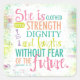 Diseño de Paradise City © 2013. Verso biblial artístico, Proverbios 31:25, Ella está vestida con fuerza y dignidad y se ríe sin miedo al futuro.