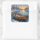 Pegatina Cuadrada Pug Christmas Boat Holiday