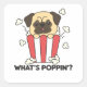 Pegatina Cuadrada Pug Dog Popcorn Whats Poppin Funny