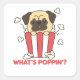 Pegatina Cuadrada Pug Dog Popcorn Whats Poppin Funny