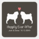Pegatina Cuadrada Pug Silhouettes con corazón y texto