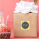 Diseño de puntos polka blancos y amarillos con monograma. El diseño presenta puntos de polka blancos sobre amarillo y un círculo gris carbonífero en el medio. Que pegatinas.