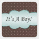 Pegatina Cuadrada ¡Punto de Polka Turquesa y Marrón es un chico!