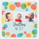 Dale a tu fiesta un toque extra especial con stickers que incluyan tus fotos favoritas. Son perfectos para decorar los suministros de la fiesta, los favores o las envolturas de las invitaciones. Estos stickers están listos para ser personalizados con tres fotos (las fotos de forma cuadrada son las que mejor funcionan) así como con el nombre y la edad de tu pequeño. Este diseño tiene un fondo azul claro que está decorado con un borde de lunares de colores brillantes en rojo, amarillo, naranja, verde y azul.