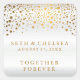 Pegatina Cuadrada Puntos de oro del Día de la Boda en satén blanco