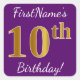 Pegatina Cuadrada Purple, Faux Gold 10 cumpleaños + Nombre personali