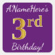 Pegatina Cuadrada Purple, Faux Gold 3Cumpleaños + Nombre Personaliza