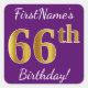 Pegatina Cuadrada Purple, Faux Gold 66th Birthday + Custom Name