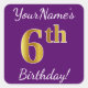 Pegatina Cuadrada Purple, Faux Gold 6Cumpleaños + Nombre Personaliza