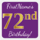 Pegatina Cuadrada Purple, Faux Gold 72nd Birthday + Nombre personali
