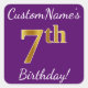 Pegatina Cuadrada Purple, Faux Gold 7Cumpleaños + Nombre Personaliza