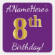 Pegatina Cuadrada Purple, Faux Gold 8Cumpleaños + Nombre Personaliza