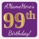 Pegatina Cuadrada Purple, Faux Gold 99th Birthday + Custom Name