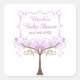 Pegatina Cuadrada Purple & Green Floral Bird Baby Shower