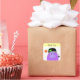 Un lindo hipopótamo morado con un gorra negro con una gran flor.