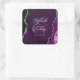 Pegatina Cuadrada Purple Silver Agate Script Wedding