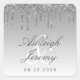 Estos stickers de boda presentan un brillante purpurina de imitación plateado goteando sobre un fondo sombrío plateado. Personalízalos con los nombres de la novia y el novio en un elegante guión de color gris oscuro superpuesto en un símbolo de la ampersa y el símbolo blanco, con la fecha boda debajo en el tipo de letra sans serif gris oscuro.