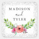 Este pegatina de moda presenta los nombres de la pareja en un elegante guión negro en la parte superior, y una bonito colorida disposición floral de flores en la parte inferior. Un purpurina de confeti plateado rompe el borde y el fondo blanco completa el diseño. Este pegatina se puede personalizar fácilmente con sus nombres personalizados, y es perfecto para un compromiso, boda o aniversario. Incluso puede cambiar el tipo de letra, el color del texto y el estilo del tipo de letra utilizando la opción personalizar.