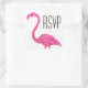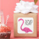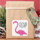 Silusión simple de flitter falso rosa caliente (efecto de foto impreso) de un flamingo contra pegatina cuadrado simple blanco. Puede cambiar el color de fondo. Si desea personalizar, puede cambiar el mensaje de texto RSVP. Letra negra alta delgada. La silueta de flamingo completa está disponible si se reduce el tamaño de la imagen de forma de pájaro y se cambia la posición.