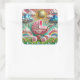 Pegatina Cuadrada Purpurina rosa Pram & Rainbows Baby Shower