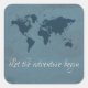 Dejar que la aventura comience el diseño de texto con la decoración de mapas del mundo sobre fondo gris, azul