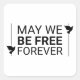 Un pegatina con un diseño que incluye texto, un par de palomas voladoras y líneas verticales con texto que dice "Que seamos libres para siempre" por expresar el amor a la democracia, la libertad y la libertad. Puede realizar el personalizar del diseño, incluso cambiando los colores de las líneas, el texto y las palomas en "Editar usando la herramienta de diseño".