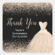 Pegatina Cuadrada Quinceanera Champagne Blanco Vestido Faux Purpurin